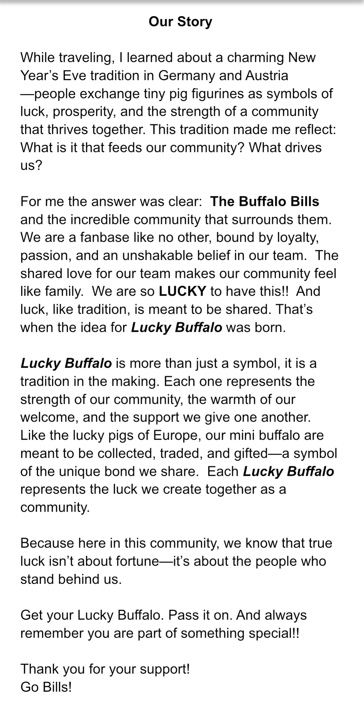 A new Buffalo tradition in the making, be apart of something special, spread the love and luck with a Lucky Buffalo today!